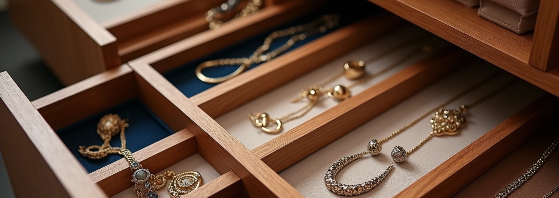 Les bagues, en particulier celles ornées de pierres précieuses, nécessitent une protection contre les rayures et les chocs. Des compartiments individuels en velours ou en mousse dense offrent une solution idéale. Ces compartiments peuvent être intégrés dans des tiroirs peu profonds ou dans des plateaux amovibles, permettant une vue d’ensemble de votre collection tout en maintenant chaque bague en sécurité.