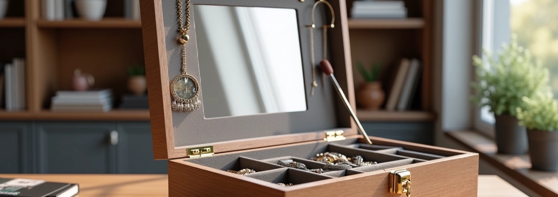 Le choix du style de votre porte-bijoux avec miroir doit s’harmoniser avec l’esthétique générale de votre espace. Pour un intérieur minimaliste scandinave, optez pour un modèle aux lignes épurées, en bois clair ou en métal blanc, avec un miroir simple et fonctionnel. Dans un décor plus contemporain, un porte-bijoux en métal brossé ou en verre fumé apportera une touche de modernité. Pour les amateurs de style Art déco, recherchez des modèles aux formes géométriques audacieuses, avec des finitions dorées ou en laiton, et des miroirs biseautés pour un effet glamour sophistiqué.